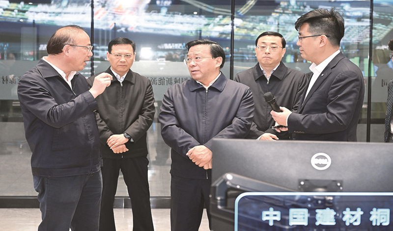 4月17日,省委书记韩俊在安庆市桐城经开区中建材桐城新能源材料有限公司,详细了解生产工艺、产品应用等情况。记者 杨 竹 摄 (通讯员 宗禾 记者 朱胜利)4月17日上午,省委书记韩俊在安庆市调研经济社会发展情况。他强调,要深入学习...