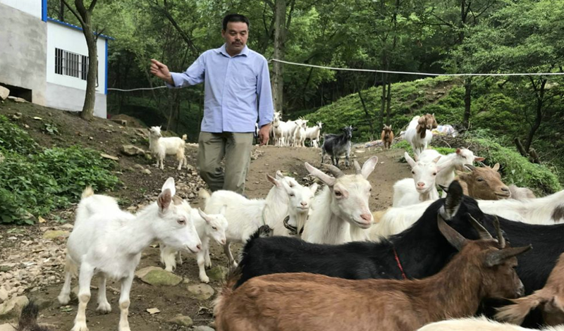 汪於常原来是大湾村村长,去年,开始专职养羊,带动40户贫困户脱贫。