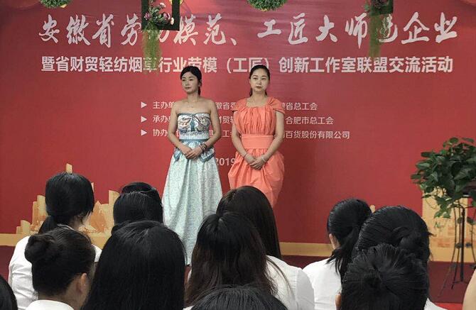 本网讯(卫莹) 为深入学习宣传贯彻习近平新时代中国特色社会主义思想,贯彻落实中办、国办《关于加强和改进新时代产业工人队伍思想政治工作的意见》精神,团结引领全省广大职工当好主人翁、建功新时代,5月31日,由省委宣传部、省总工会联合主办的省劳动模范工匠大师进企业暨省财贸轻纺烟草行业劳模(工匠)创新工作室联盟交流活动在庐江举行。8位劳动模范和工匠大师同160余名职工共聚一堂,展示传统技艺,讲述劳模故事,传承工匠精神。