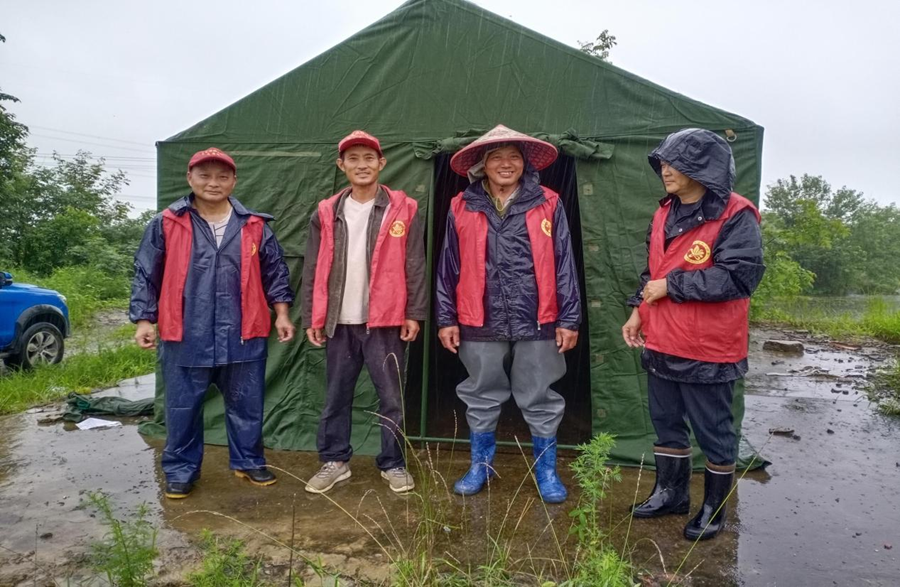 右二为叶良忠在圩埂防汛
