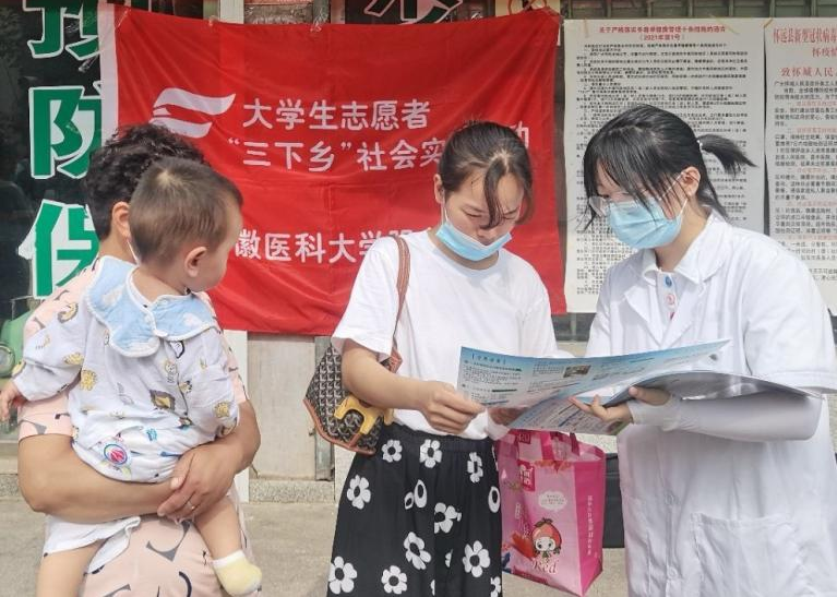 活动过程中,团怀远县委副书记赵明远、荆山镇卫生院副院长张景梅也来到现场,对队员们下乡镇进社区普及健康知识的“三下乡”社会实践活动表示肯定。赵书记表示:“炎炎夏日,安医大的同学们来到怀远,运用所学医学专业知识,深入社区、贴近百姓,为群众办实事解难题,在乡村振兴中践行“请党放心,强国有我”的铮铮誓言,为青春添了色彩,为团旗增了颜色。”在场队员备受鼓舞,纷纷表示将“人民至上,生命至上”理念内化于心,外化于形,争做新时代的有为青年。