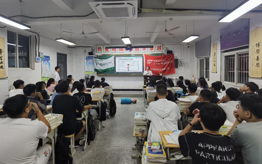 7月21日,正值盛夏酷暑,安徽医科大学第一临床医学院暑期“三下乡”社会实践团队,分别前往怀远县荆山镇社区街道、淝南镇中南村刘咀小学及怀远县第三中学,集中开展科普应急救护技能、宣传食品营养知识和开展美丽乡村支教等活动。大家让奋楫之姿展现青春大美,以健康中国惠及乡村振兴。