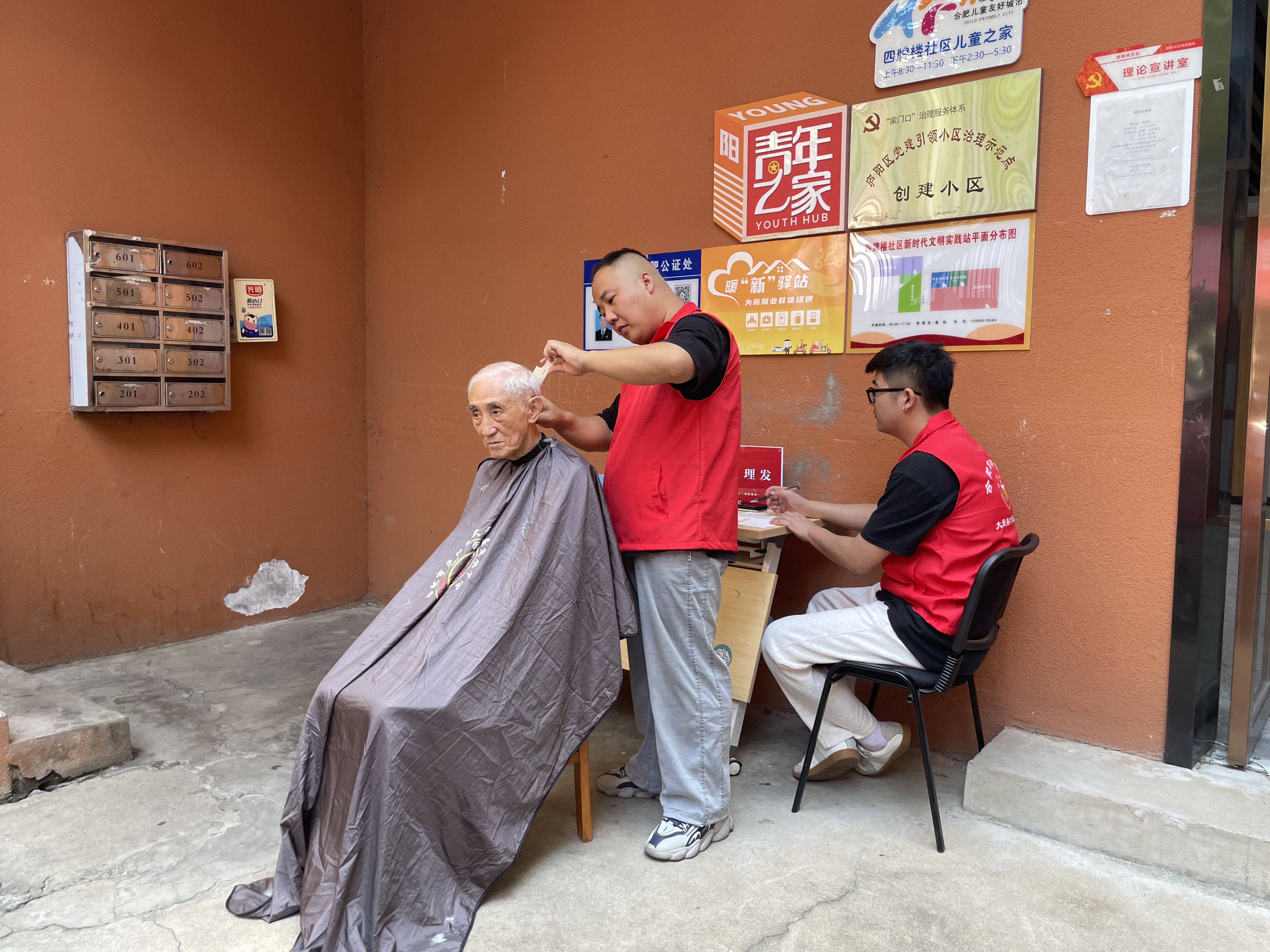 此外,来自上海的理发师肖平也现场为居民提供免费理发服务,专业的技术赢得阵阵好评。从生活琐事到应急需求,志愿者们用专业服务帮助居民解决生活中的问题。