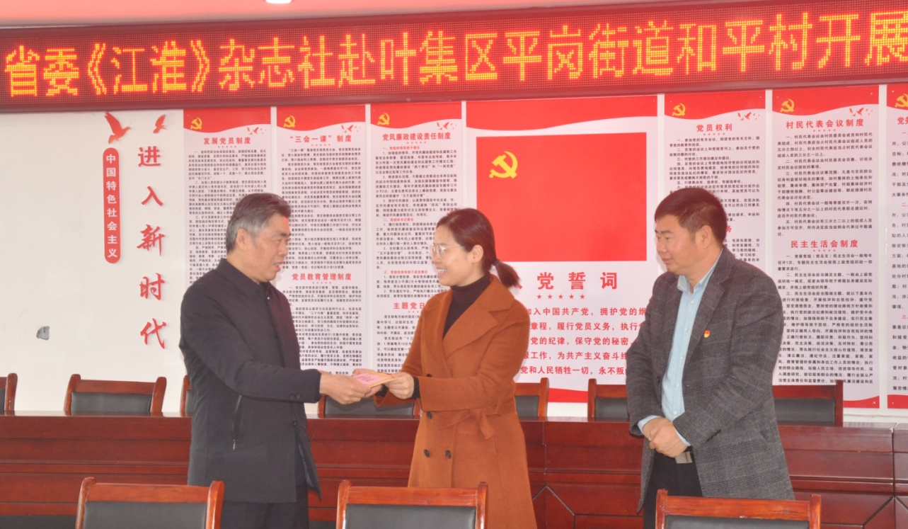 在和平村村委会,王玉斌看望慰问了村两委干部,并代表江淮杂志社党委送上慰问金。接着,王玉斌就如何进一步助力和平村推进乡村振兴与大家进行了深入座谈。和平村党总支书记张舰介绍了和平村党建引领社会治理的具体做法,以及特色产业、集体经济、文旅开发等方面的进展情况。王玉斌表示,和平村在巩固脱贫攻坚成果、推进乡村振兴工作上有特点、有重点、有亮点,江淮杂志社将继续加强与和平村沟通联系,做好结对帮扶共建,特别是要发挥党刊的主流媒体优势,在宣传推介上持续发力,推动和平村乡村振兴工作取得更大的成绩。