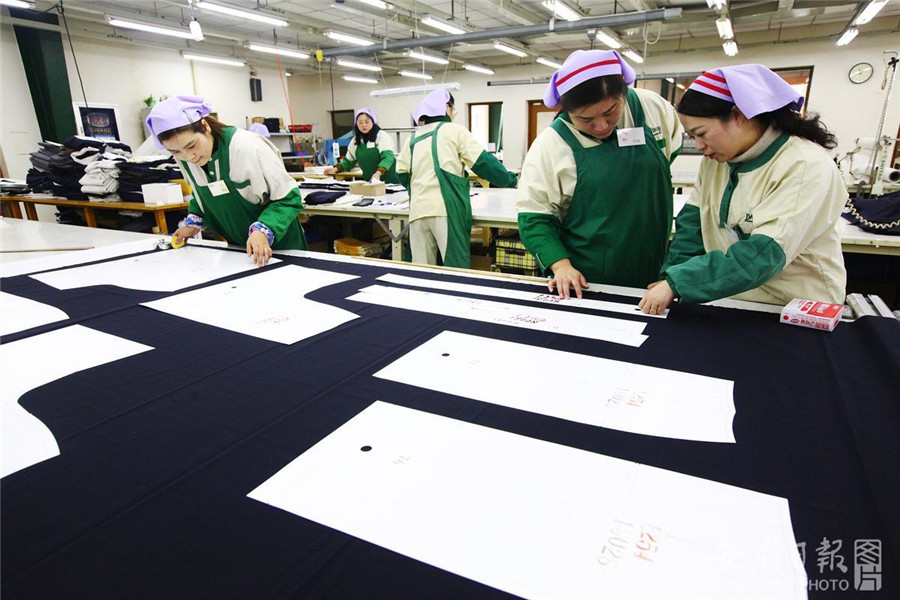 2月25日,马鞍山经开区大同佳乐登(马鞍山)有限公司员工在加工制作出口服装。该公司产品90%出口到日本和欧美等国家和地区。今年以来,马鞍山市进出口保持良好增长态势,1月份,全市出口额达2.1亿美元,同比增长65.2%,实现了开门红。