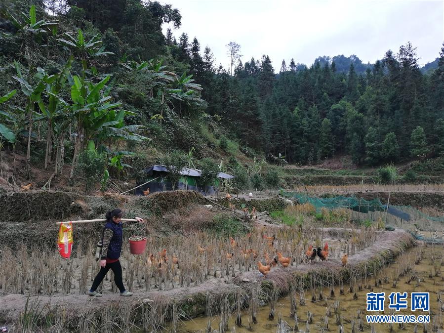梁晓花清早去喂家禽(2018年12月23日摄)。新华社记者郭轶凡 摄