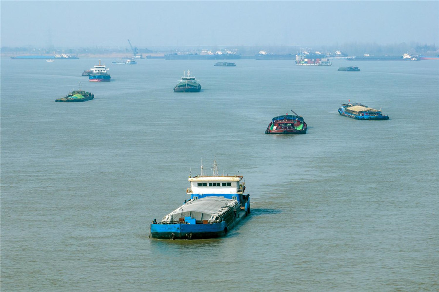 2月27日,在长江芜湖市繁昌区荻港镇段水域,装运着生产和生活物资的货运船舶往返穿梭。新春伊始,素有“黄金水道”之称的长江迎来航运繁忙季。
