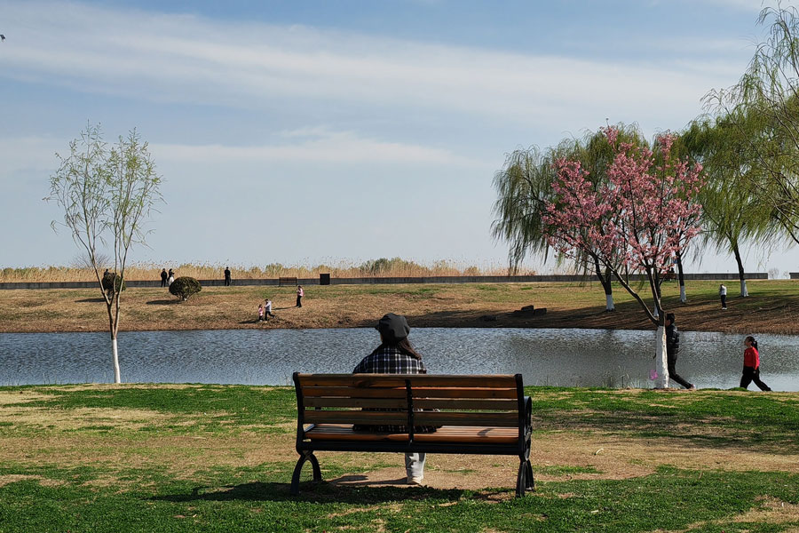 3月16日,天朗气清,惠风和畅。巢湖岸边春光明媚,繁花似锦,水碧天蓝,游客众多。人在巢湖边,如置身画中。游人享受着湖边旖旎春光,身心获得放松和愉悦的同时,也成为了湖边美好春光的一部分。(贺鹏云 摄)