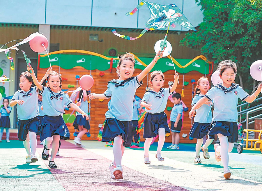 5月28日,淮北市第三实验幼儿园的小朋友在放风筝。当天,该幼儿园组织开展做手工龙舟、放风筝等游戏,让孩子们共度美好时光。通讯员 冯树风 张凤美 摄