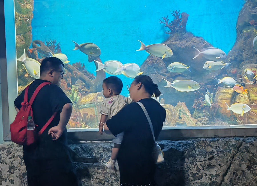 8月3日,中伏时节,暑气逼人。合肥海洋馆里清爽宜人、游人如织、热闹非凡。大人和孩子们观赏着丰富多样的海洋生物,体验着海洋世界带来的美好,流连忘返。美人鱼表演、海狮表演、海豚表演等吸引了众多观众,现场不时传出掌声和欢笑声。(贺鹏云 摄)