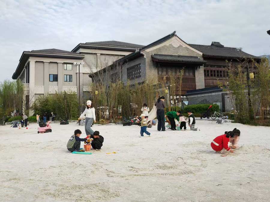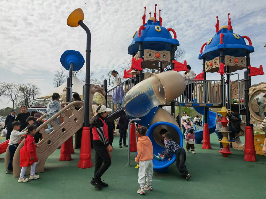 滑滑梯上爬上滑下,沙滩上搭建城堡……春日的合肥市方兴湖公园、塘溪津门水街等景点的室外儿童游乐场地成了孩子们的乐园。在家长的陪伴下,他们尽情嬉戏玩耍,乐享美好童年时光。(贺鹏云)