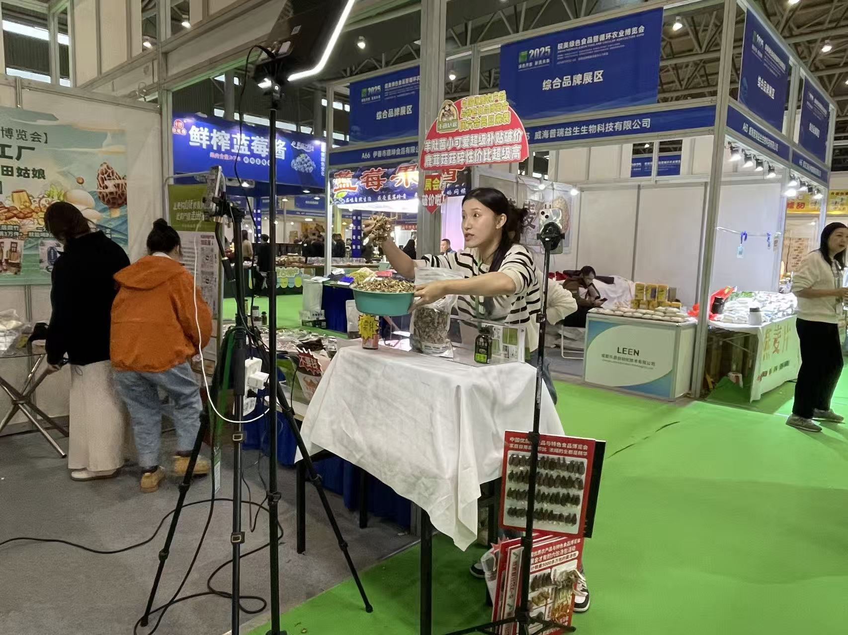 本届农博会展区设置直播间与流动直播团队,全面升级“直播+农业”模式,通过实时互动、试吃演示、产地溯源等形式,让徽州臭鳜鱼、霍山石斛等“皖美农品”云端出圈。