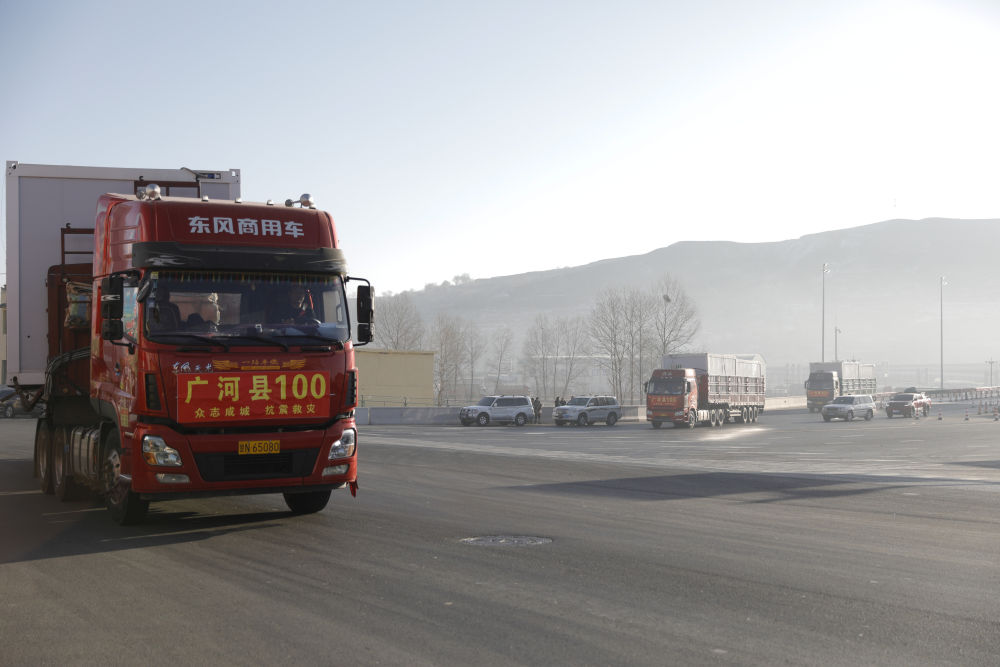 2025年1月28日,辽宁省葫芦岛市绥中县明水满族乡祝家沟村村民在重建新房的村党群服务中心前鸣锣击鼓。新华社发(田嘉 摄)
