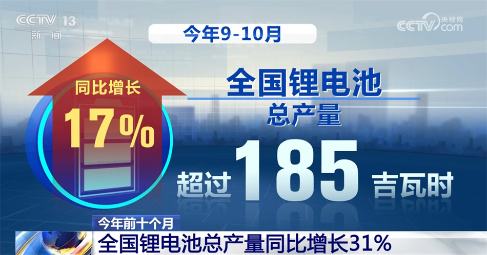 工业和信息化部最新数据显示,今年以来,我国锂电池产业延续增长态势,前十个月全国锂电池总产量同比增长31%。