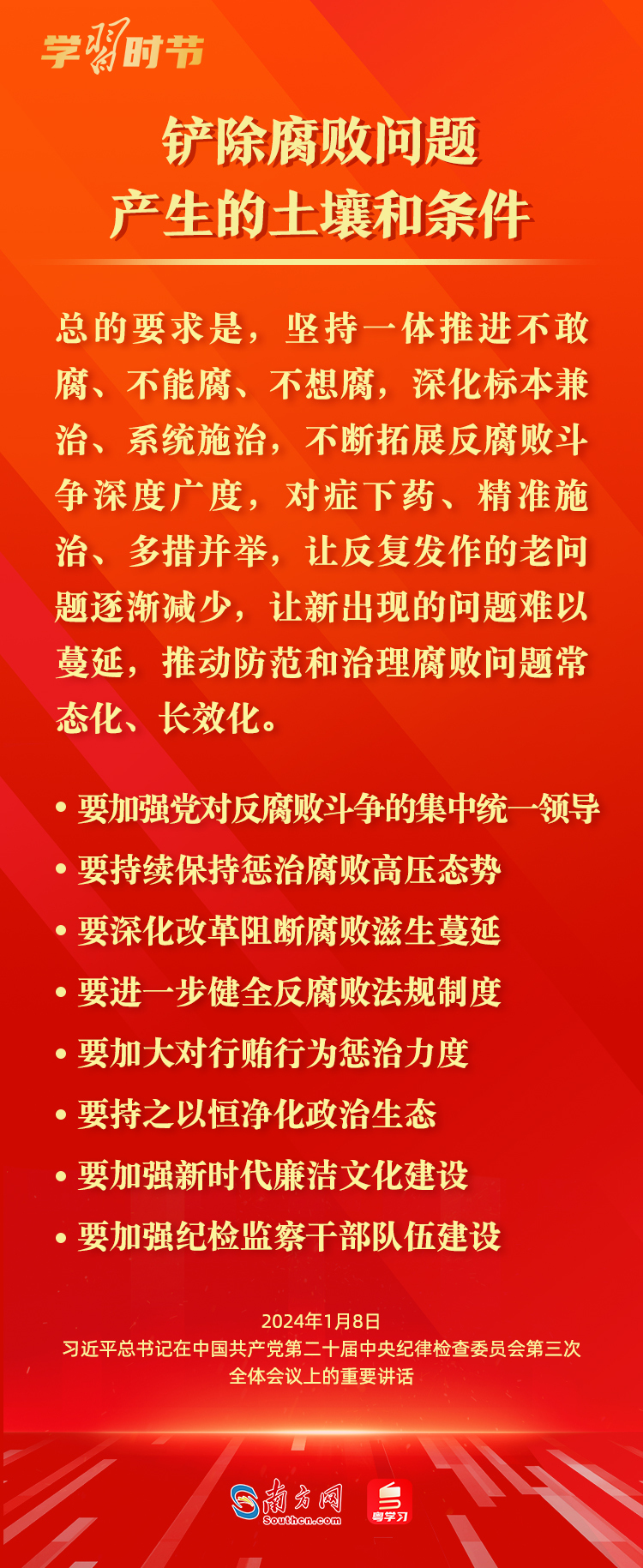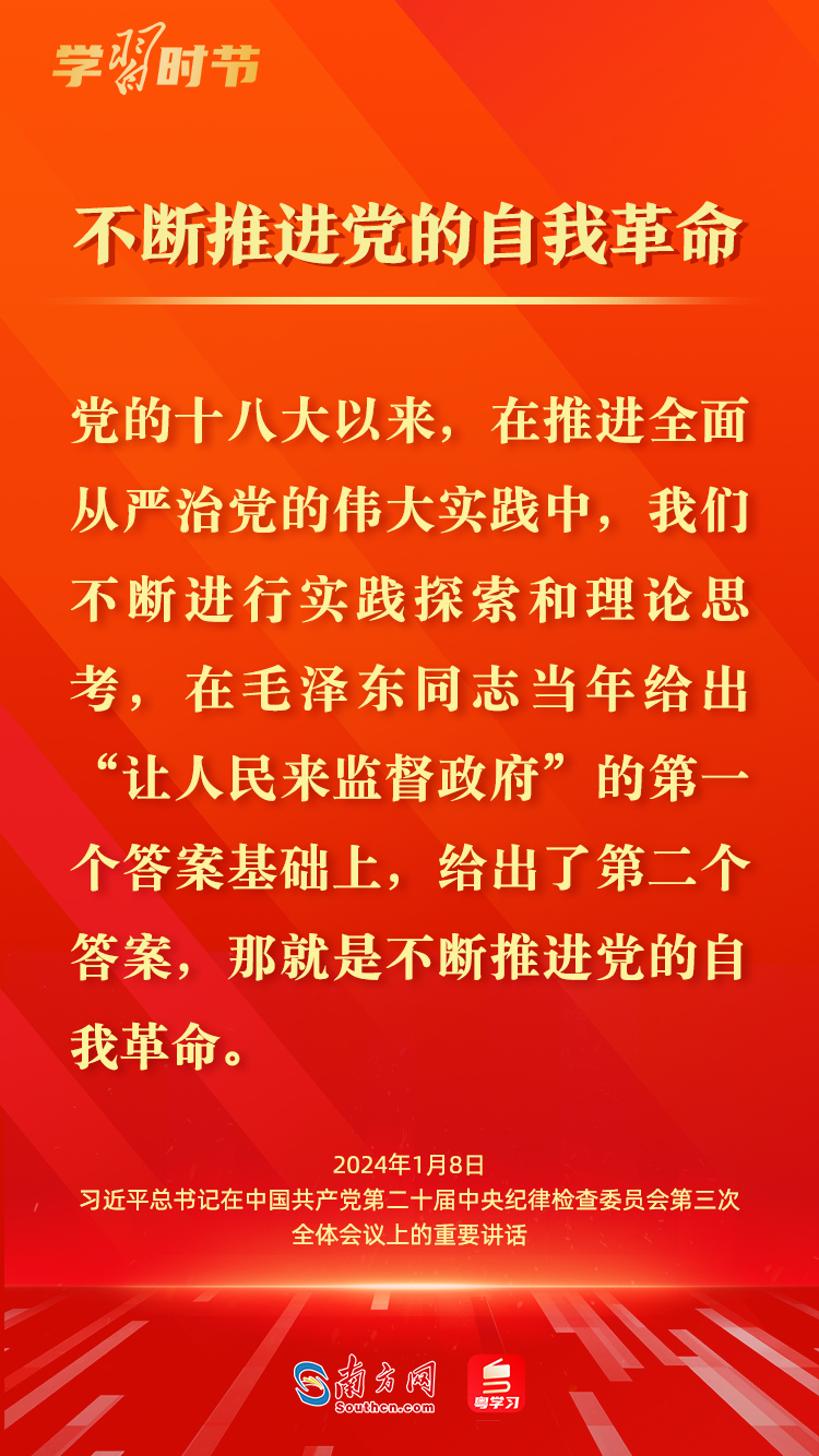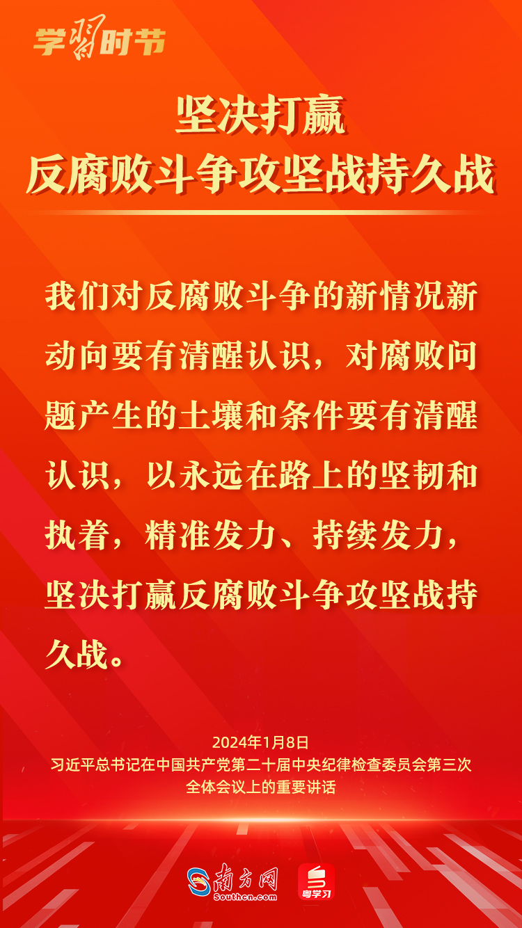1月8日,中共中央总书记、国家主席、中央军委主席习近平在中国共产党第二十届中央纪律检查委员会第三次全体会议上发表重要讲话,深刻阐述党的自我革命的重要思想,对持续发力、纵深推进反腐败斗争作出战略部署。