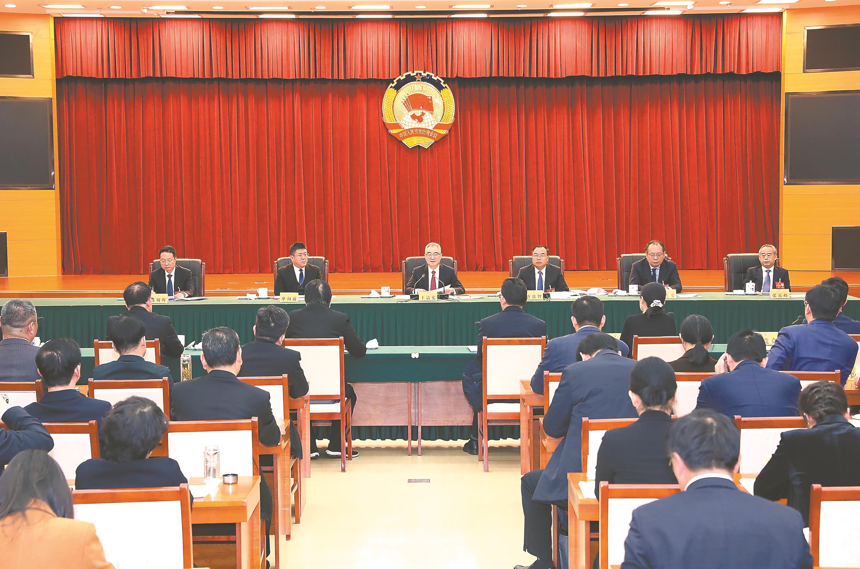 1月23日下午,省长王清宪来到省政协十三届二次会议民建界、工商联界、港澳地区委员及列席台侨胞代表联组会议会场,听取意见建议。 记者 许 昊 摄