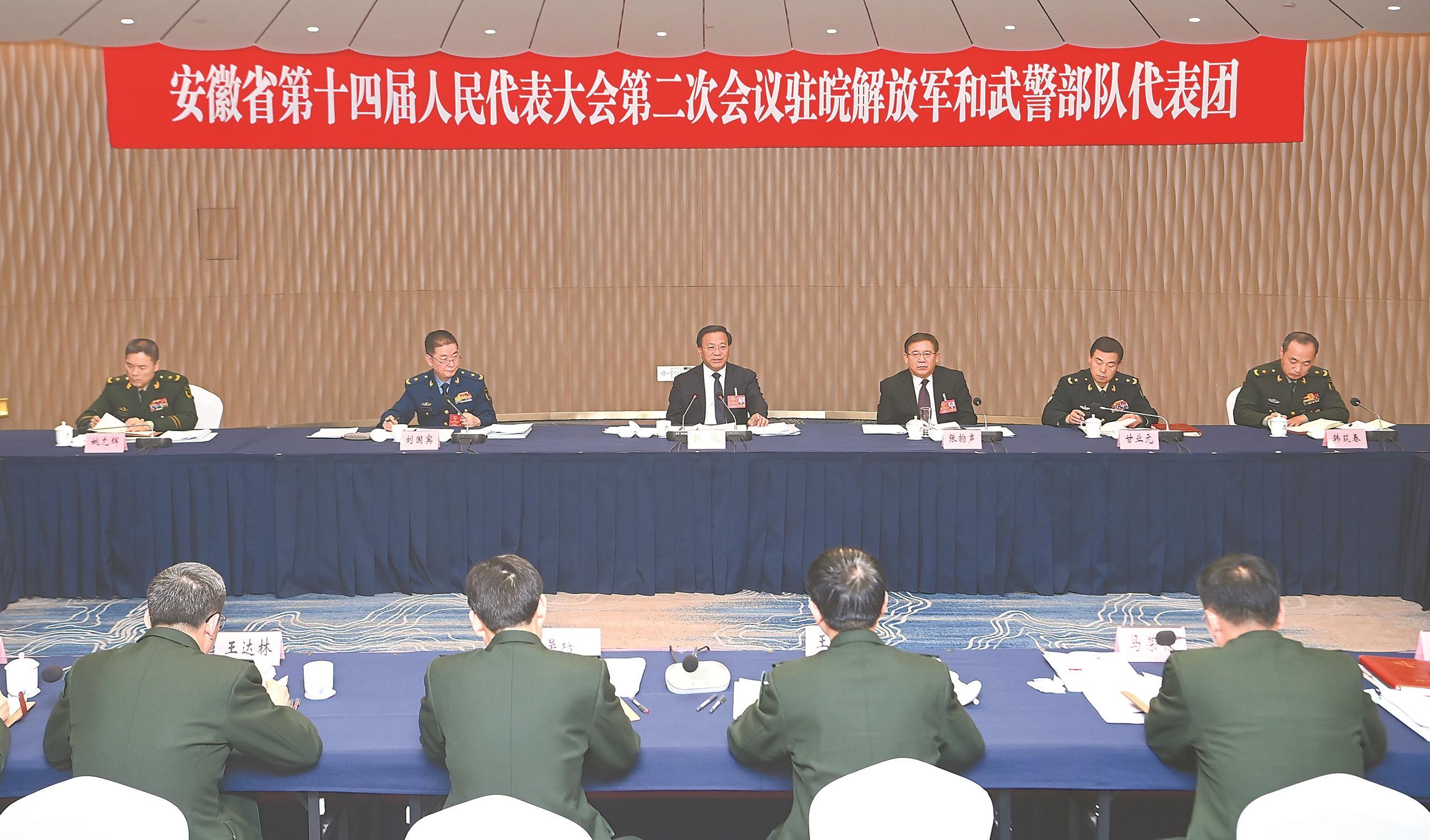 1月23日下午,省委书记韩俊来到驻皖解放军和武警部队代表团,与代表们一起审议《政府工作报告》。记者 杨 竹 摄