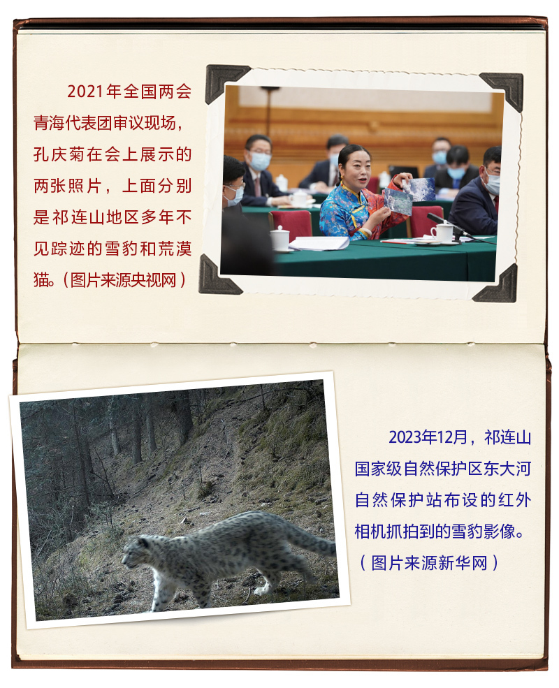 2021年3月7日,在全国两会青海代表团审议现场,孔庆菊代表拿出的两张“大萌猫”照片,吸引了习近平的目光。