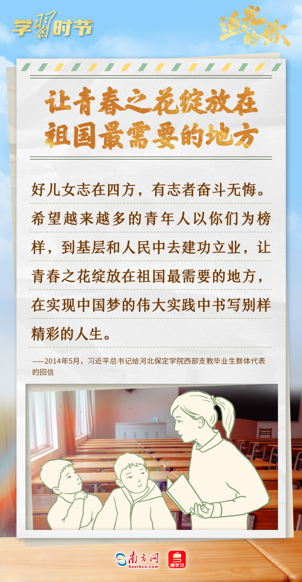 青年是国家和民族的希望。党的十八大以来,习近平总书记多次通过回信、贺信的方式寄语青年,鼓励广大青年为实现中华民族伟大复兴的中国梦贡献青春力量。在五四青年节到来之际,让我们一起重温总书记在信件中向青年人传达的深深关怀与殷殷期许。
