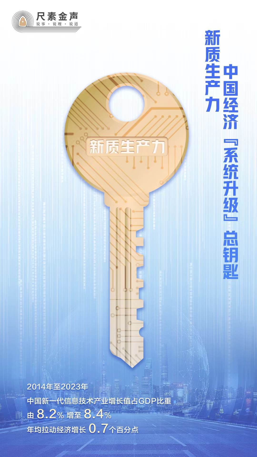 众所周知,高质量发展是中国全面建设社会主义现代化国家的首要任务。如果把高质量发展比喻成一套房间,新质生产力就是总钥匙。抓住总钥匙,就打开了发展新空间。