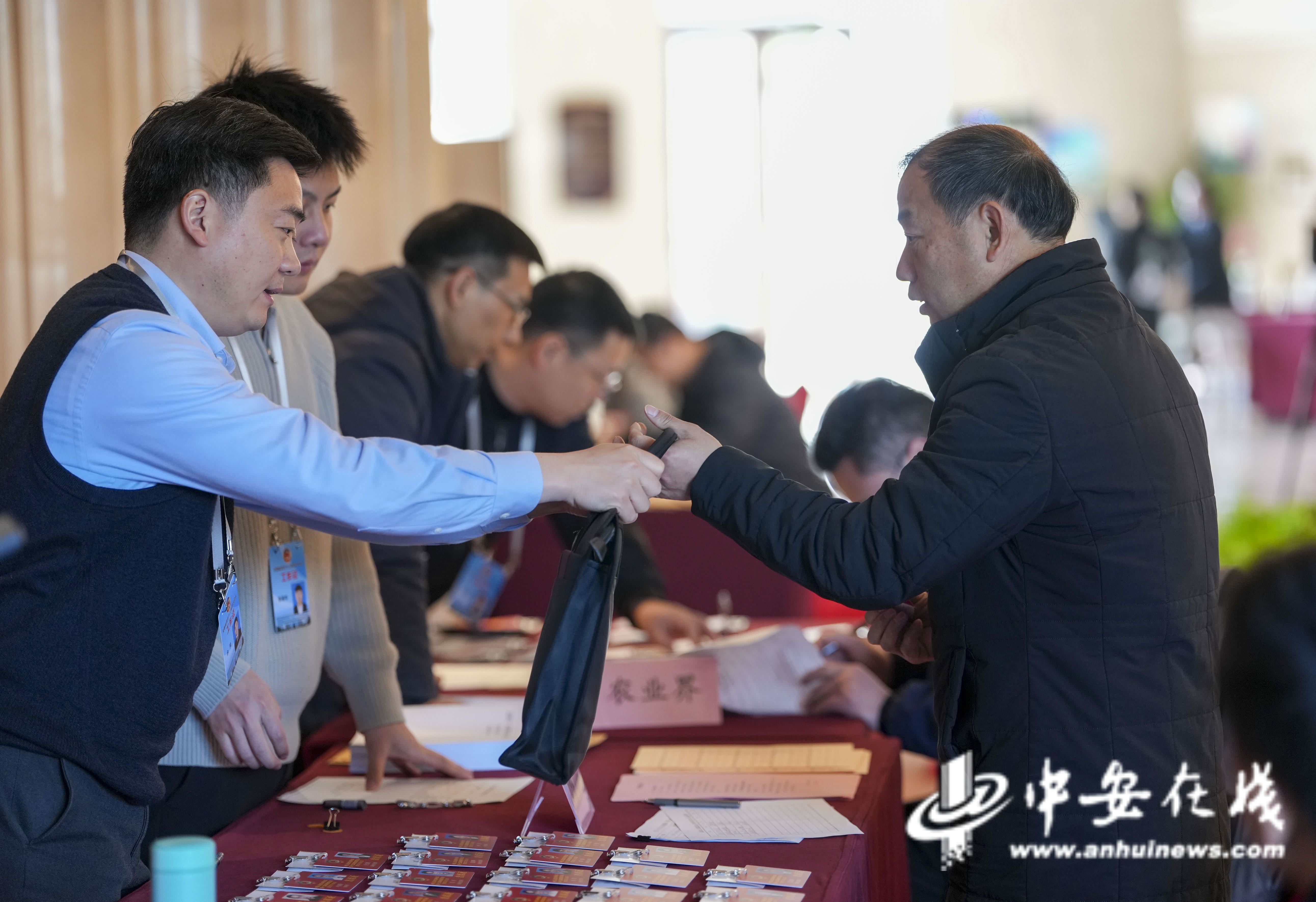 报到现场布置得庄重而简朴,洋溢着务实、清新的会风。各住地宾馆入口处,“热烈欢迎省政协委员”的电子屏暖意融融。报到台前,工作人员早已准备就绪,笑容满面,高效有序地为委员们办理相关手续:核对信息、领取证件、会议材料等。整个过程流畅便捷,体现出大会组织工作的周密细致。