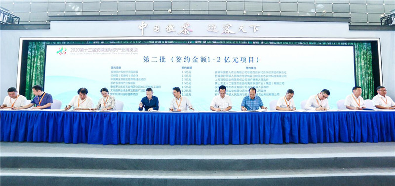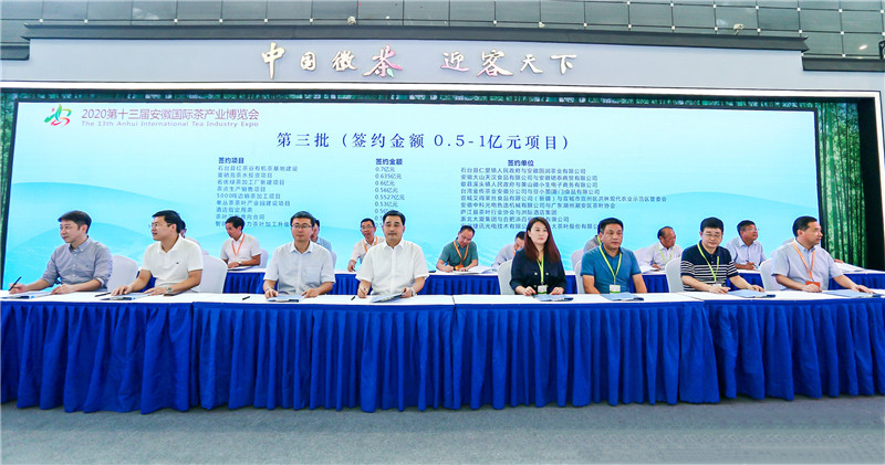 本网讯(记者 史洪芳)8月28日,2020第十三届安徽国际茶产业博览会在合肥滨湖国际会展中心开幕。当天上午,大会举行集中签约仪式,共签约25个项目,累计金额27.9677亿元。