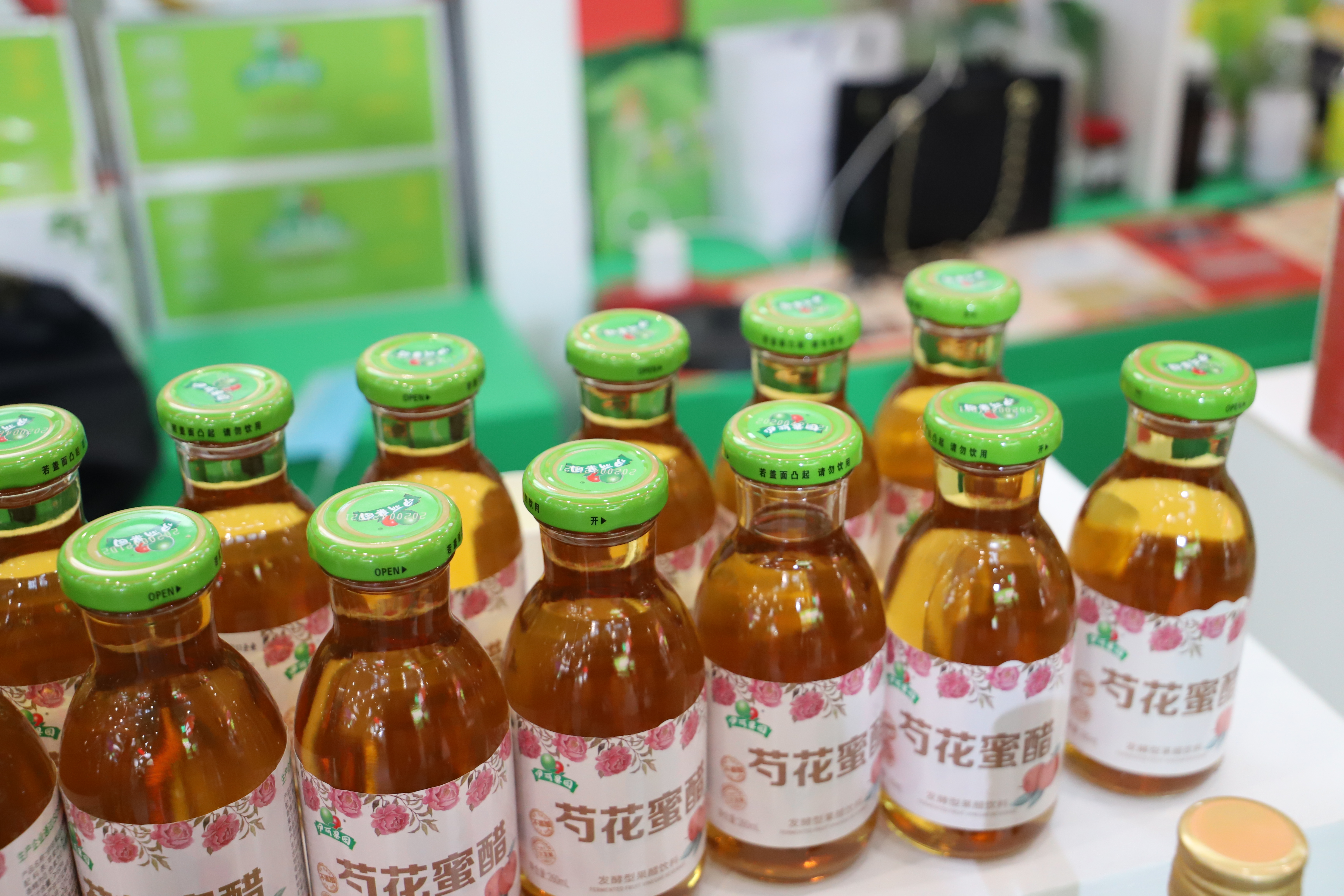 同样,安徽花吟姿生物科技有限公司创始人王品武本着家乡情怀和对芍药花的特殊情结,专注药都亳州特色芍药花的深度研发,生产出面膜、精华液、洁面慕斯、补水喷雾等护肤品,现场吸引了众多观众进行试用。亳州市伊丽果园家庭农场同样也是进行芍药花的深加工,生产出国内首款芍花鲜花饮料,即“发酵型苹果芍花醋饮料”。“主要以芍药花、苹果醋、蜂蜜为主要原料,富含人体所需的氨基酸成分以及10多种矿物质,VC含量是一般水果的10倍之多。”工作人员介绍道。