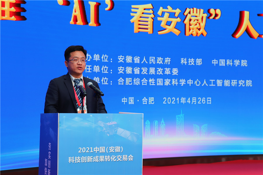本网讯(记者 史洪芳)4月26日,2021中国(安徽)科技创新成果转化交易会“头雁起江淮 ‘AI’看安徽”人工智能高端论坛在安徽创新馆举行,专家学者和企业家们济济一堂,以人工智能论坛与圆桌论坛形式,深入探讨人工智能前沿科技成果、产学研全链条协作模式和产业发展趋势。