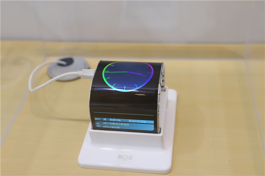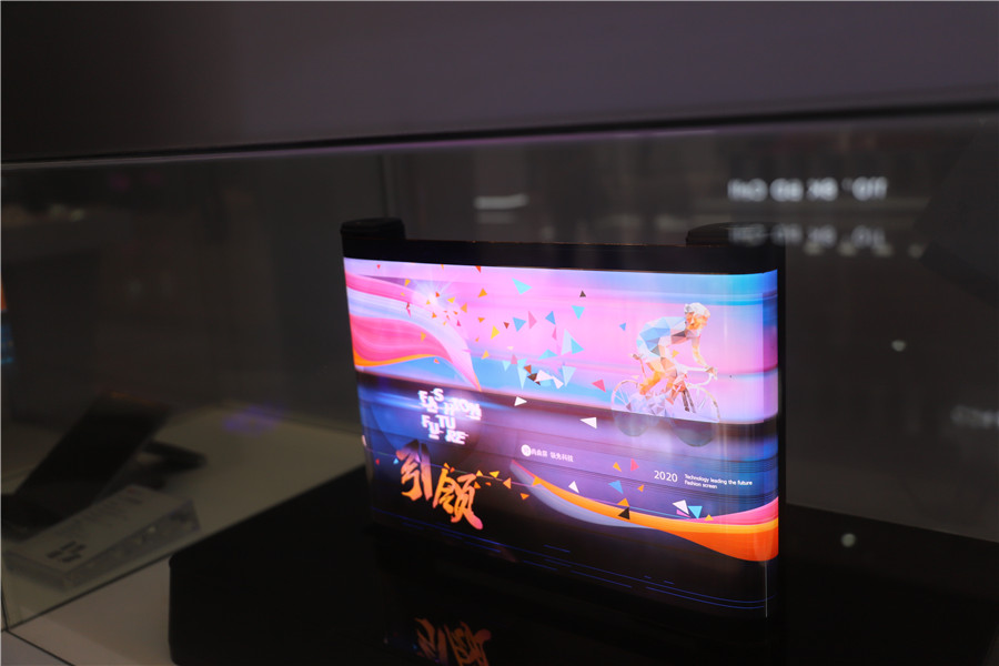 在展示现场,折叠屏产品丰富多样,包括对折、三折、360度折、卷轴等多种形式。京东方带来全球首款360度折叠柔性显示屏吸引了参观者的目光,这种柔性显示屏采用多中性层模型设计,有效降低了柔性“外折”和“内折”的应力。TCL华星展示的形状像书卷的16.9英寸打印式OLED卷轴屏,基于高精度喷墨印刷工艺制造,无需使用精细金属掩模版,更利于大尺寸及大规模量产使用。