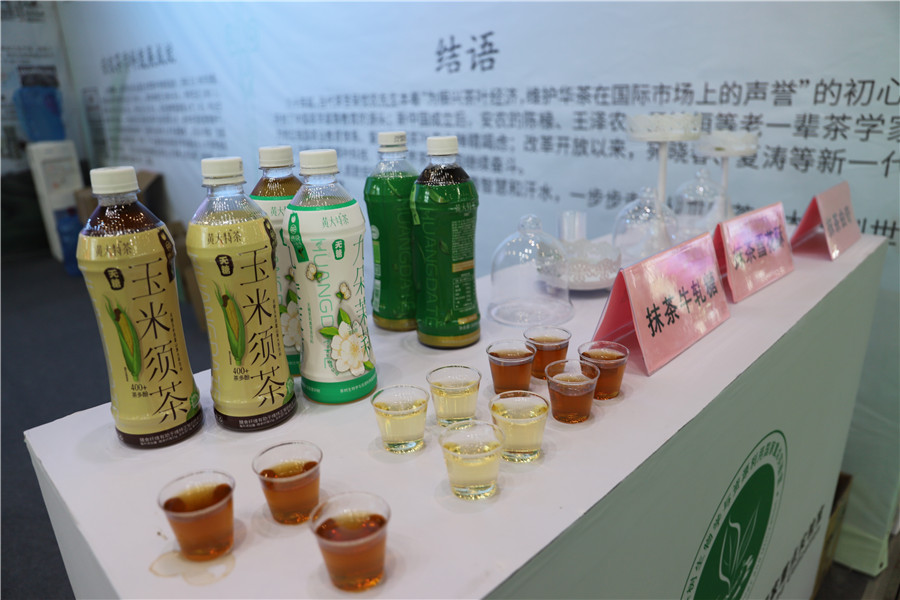 茶博会上,不仅有令人眼花缭乱的茶叶,还有一系列以茶叶为原材料制成的饮品、化妆品等茶叶衍生品,这些新产品大大提升了茶叶的附加值。省部共建茶树生物学与资源利用国家重点实验室展厅内,通过图片、实物等多种形式来展示茶叶科技成果,助推茶产业转型升级。展架上摆放着的玉米须黄大特茶以霍山黄大茶为原料,入口甘甜清润。霍山黄大茶原本是低档产品,后经实验室实验证实,其具有显著的辅助降血糖、降血脂等功效,系列基础研究成果为开发以健康为导向的功能性茶产品提供了科学依据,带动了皖西茶区茶产业的飞速发展。