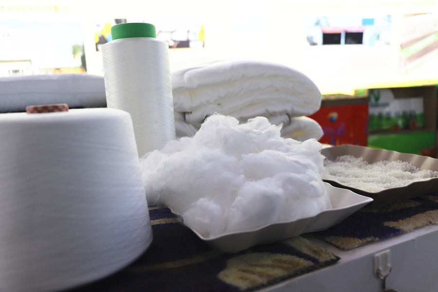 安徽鼎洋生物基材料展台上放着的凝珠水溶膜是一种环保包装材料,在生产过程中添加秸秆纤维、聚乙烯醇。该公司工作人员徐浩告诉记者:“把这种膜制成的洗衣凝珠放进洗衣机,可以很快溶于水,方便环保,且比普通洗衣粉、洗衣液清洁力更强。”