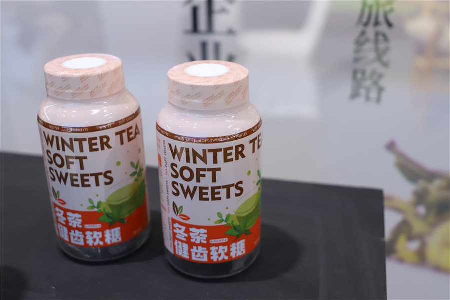 黄山新安源有机茶开发有限公司展位上的啤酒和健齿软糖引发观众好奇,这些产品和茶有什么关系?该公司的冬茶研究院以萃取和研磨为基础技术,结合现有工艺的改进,利用冬茶研制面向消费者偏好的产品,包括冬茶啤酒、含片、健齿软糖、米酒等,目前在研发冬茶巧克力、曲奇饼干等新产品。