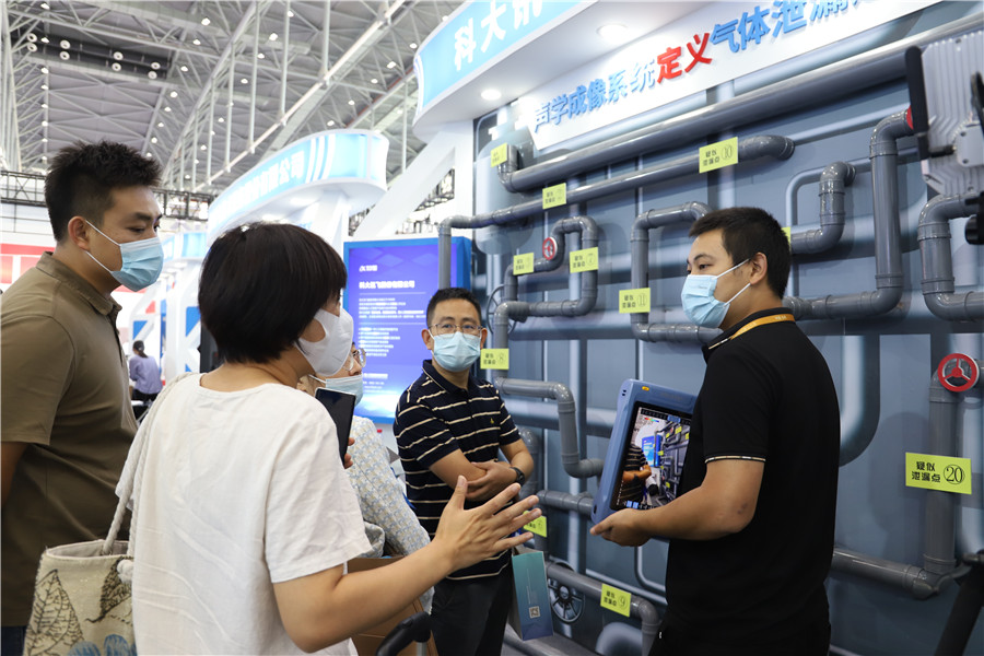 “三首”产品展区包括安徽省首台套重大技术装备、首批次新材料、首版次软件,展示了一系列创新成果。其中,首版次软件——科大讯飞自主研发的声学成像仪和声成像组件吸引了众多观众驻足了解。科大讯飞联合国家智能语音创新中心共同研发的声学成像仪,应用于电力、燃气、钢铁、化工、制造等行业,可以“看见”极其细微的局部放电、气体泄漏、设备异响点的具体位置,平均检测效率提升80%以上,提升巡检效率,保障生产安全。而声成像组件主要用于声音可视化在线监测,可单独固定安装也可与无人机、机器人、机械狗等设备集成。