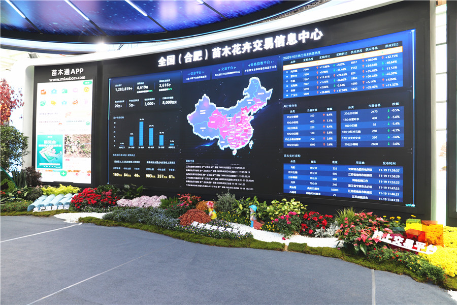 肥西馆展示的是全国(合肥)苗木花卉交易中心和“苗木通”App。在开幕式上,“全国(合肥)苗木花卉交易信息中心”正式揭牌,该中心包括苗木交易平台、信息平台和价格指数平台3个部分,这是经国家林草局批准的目前全国唯一的国家级苗木花卉交易信息平台。为全方位建设中心“三大平台”,肥西县特携手安徽苗木通有限公司打造了“苗木通”App。“苗木通”App囊括30多万供应商、7000余种品类以及诸多上市采购企业,苗木花卉经营主体、采购主体以及各类协会均可使用。据了解,自苗木通于今年5月入驻肥西以来,新增注册用户14万,新增入驻苗企5000多家,撮合交易额超5亿元。