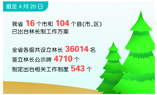 绿水青山就是金山银山。我省林长制改革突出“护绿”“增绿”“管绿”“用绿”“活绿”五大任务,确保一山一坡、一园一林都有专员专管、责任到人,聚力生态保护和建设。截至4月20日,全省像黄晓本这样的村级林长全省共有24982名,林长制改革在守护绿水青山的同时,也为当地创造了可观的经济效益。荒山正在变成金山银山,绿水青山和金山银山实现了有机统一。