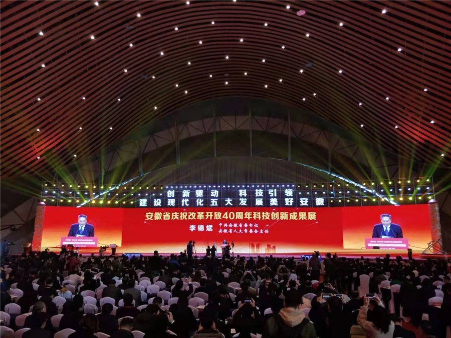 本网讯(记者 史洪芳)12月18日上午,安徽省庆祝改革开放40周年科技创新成果展在合肥滨湖国际会展中心拉开帷幕。安徽省委书记、省人大常委会主任李锦斌作重要讲话并宣布成果展开幕。省委副书记、省长李国英主持开幕式。开幕式上,省委书记李锦斌,省委副书记、省长李国英为安徽省“数字江淮中心”揭牌。省委常委、合肥市委书记宋国权致辞。