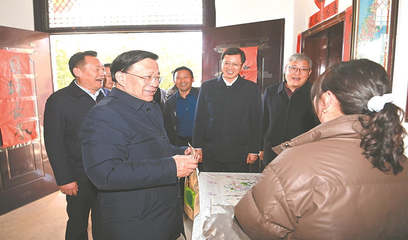 2月16日,省委书记韩俊在金寨县油坊店乡面冲村,走进茶农家中详细询问茶叶种植、采摘、销售收入等情况。记者 杨 竹 摄 (通讯员 宗禾 记者 朱胜利)2月16日,农历正月初七,省委书记韩俊来到六安市金寨县调研乡村振兴“千万工程”推进情...