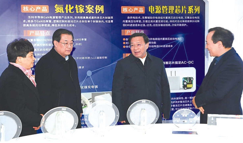 1月10日,省委书记韩俊在位于马鞍山市经开区的东科半导体(安徽)股份有限公司,听取企业生产经营情况介绍。记者 杨 竹 摄 (通讯员 郑言 记者 朱胜利)1月10日,省委书记韩俊赴马鞍山市调研经济社会发展情况。他强调,要深入学习贯彻党...
