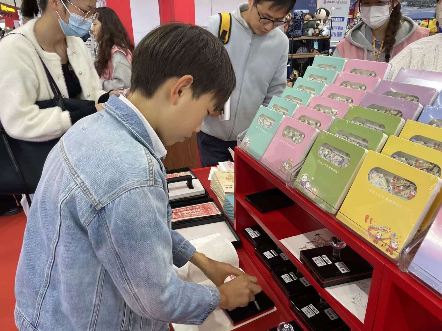 “‘钱龙引进八方财’借鉴传统年画改良,‘读书贪吃蛇’结合蛇年元素与阅读寓意,‘合肥文旅章’是城市地标的移动窗口,西汉四象瓦当灵感设计的印章更是兼具古朴韵味与现代审美。”青壹社展台前,设计师范振宇向观众介绍着自家的原创印章。这些融合传统民俗与现代设计的非遗文创作品,吸引着众多观众驻足观赏、打卡盖章,让非遗在创意设计中贴近生活。