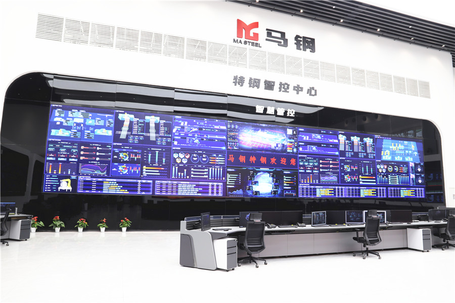 同时,结合马钢整体信息化实施方案,马钢新特钢项目设计配套了智能装备、集中控制、远程运维,努力提升系统“四个一律”和智慧制造水平。这一点,从布满屏幕的马钢特钢智控中心就可以看出。该中心集全产线远程操控、集中管控、智慧应用于一体,是优特钢行业首个集钢轧一体、进驻产线最多、规模最大的智控中心,拥有50多项先进应用技术,实现工序互联互通、数据融合共享、生产可视化、电炉远程炉膛温度判定等功能,助力特钢公司成为高效益、高效率、高科技的智能工厂,为马钢进一步提升优特长材产品市场竞争力、打造优特长材专业化平台公司提供有力支撑。