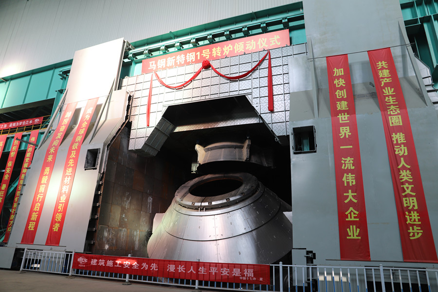 宝武马钢集团新特钢项目建设现场一片忙碌嘈杂景象,缓慢转动着的巨大炉体上方正挂着“马钢新特钢1号转炉倾动仪式”红色条幅,该项目是为着力把马钢打造成为中国宝武优特钢精品基地而实施的重大技改工程项目。宝武马钢特钢公司副经理、总工程师龚志翔告诉记者,该项目计划总投资92.69亿元,分两期实施,一期工程计划于2023年6月底前投产。该项目设计年产钢320万吨,钢坯315万吨,其中中棒100万吨,线材及大盘卷115万吨。产品重点瞄准轴承钢、齿轮钢、弹簧钢、非调质钢、合金冷镦钢等中高端产品市场。“项目建成后,年产钢将达320万吨,加上年产120万吨的电炉生产线,将实现440万吨马钢特钢总体产能,届时马钢优特钢国内市场占有率将从3%提升至12%。”