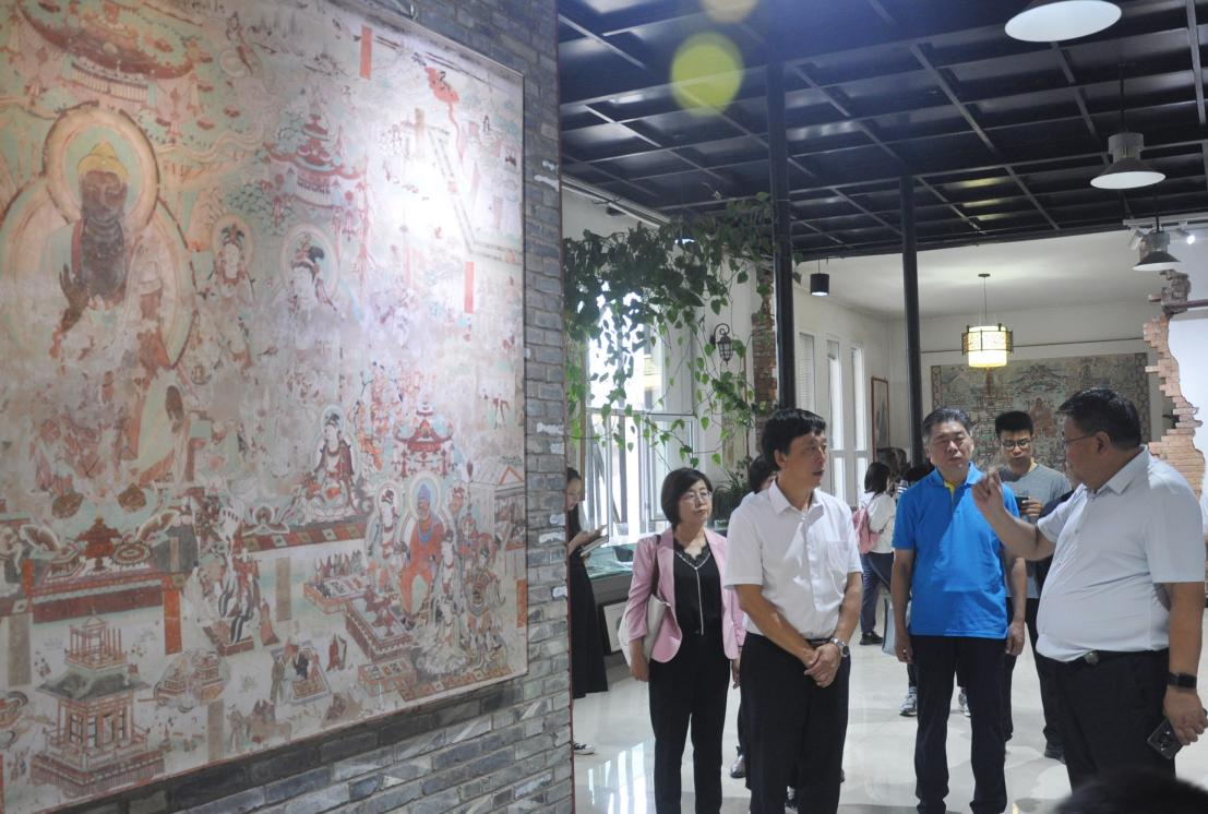 河西学院负责人向采访团介绍敦煌壁画特色课程教学。