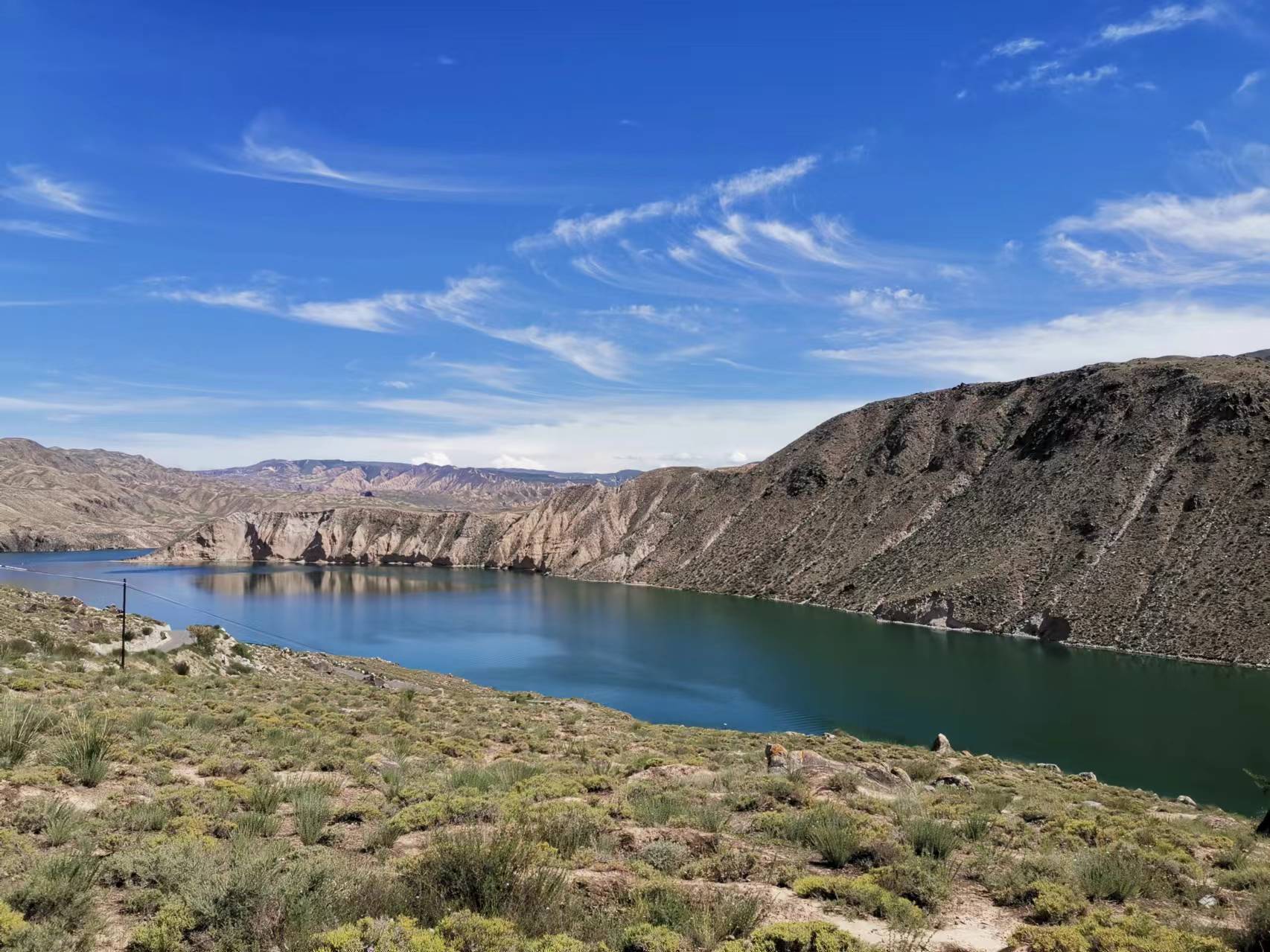 龙羊峡水电站的水力发电和龙羊峡水库西侧的塔拉滩光伏园区的光伏发电互为补充,成为了全球规模最大、最为先进的水光互补新能源电站。