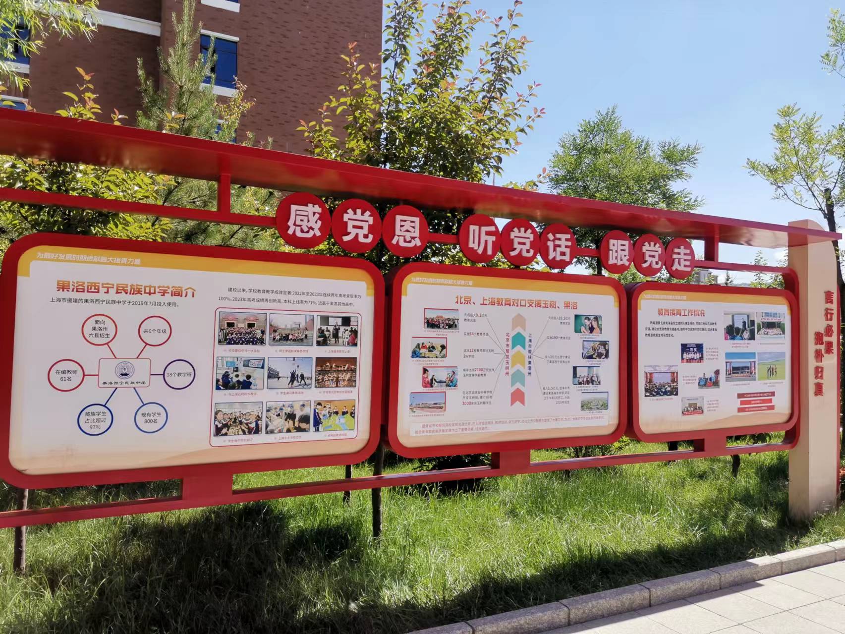 自首届招生起,已有1400多名来自高原牧区的果洛学子,跨越重重高山,来到西宁求学。目前,学校在校学生800名,其中藏族学生778名,占比超过97%。2022年至2023年连续两年高考录取率为100%,其中2023年高考本科上线率飙升至71%,彻底改变了果洛本科上线率长期低于20%的困境,为当地教育事业带来新希望。