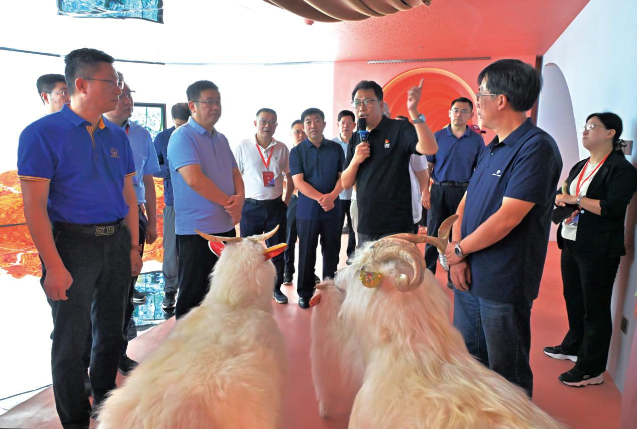 赤峰东黎羊绒股份有限公司负责人向采访团介绍企业发展情况。张耀东/摄